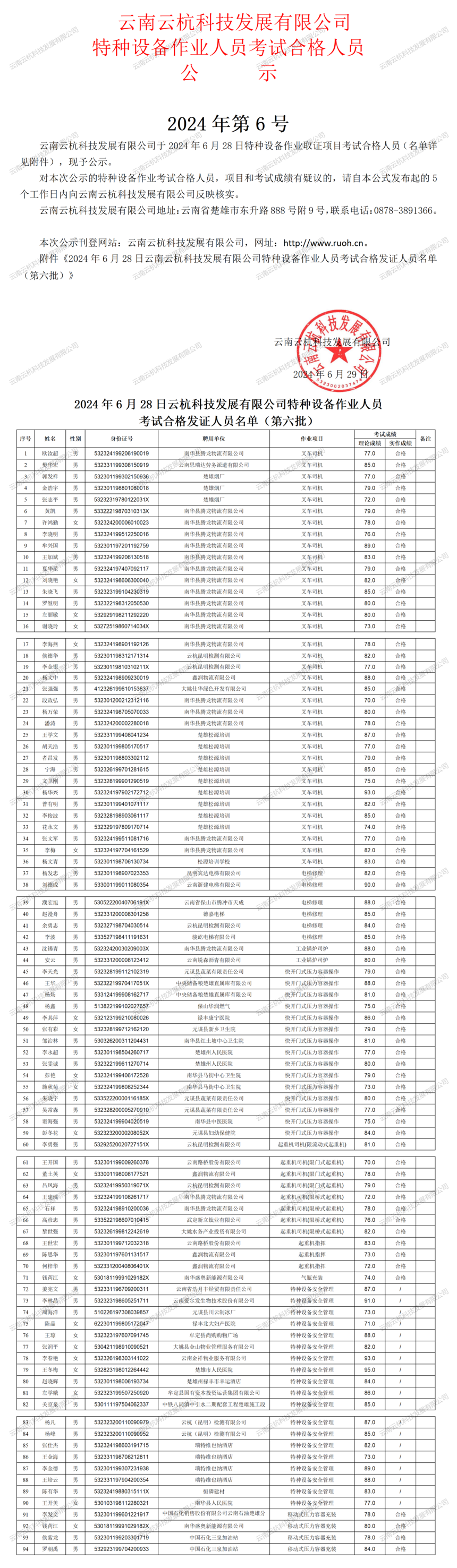 网站首页 >> 通知公告 >>公示 >> 2024年6月第六批考试合格人员公示名单
